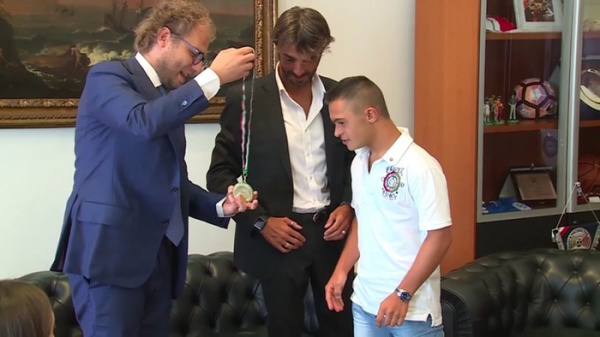 Ezt a hőstettet nem csak a lányok szülei és az internetes felhasználok díjazták, de az olasz sport miniszter is megjutalmazta őt. Megkapta a bátorságért érdemjelet, a bátor cselekedetért és az atletikusságáért.